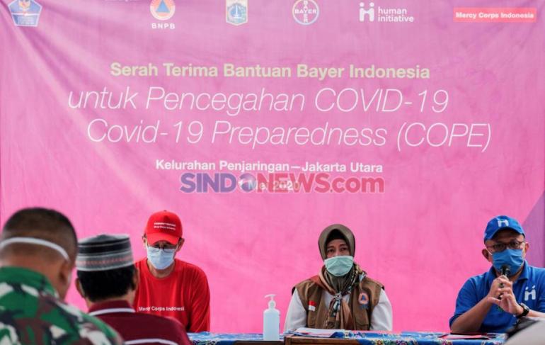 Bayer Indonesia menunjuk Yayasan Mercy Corps Indonesia untuk melaksanakan 3 kegiatan utama di kelurahan Penjaringan, Jakarta Utara mulai tanggal 19 Maret–19 Mei 2020 yaitu membangun 30 fasilitas cuci tangan komunal di lokasi strategis dan mobilitas tinggi, edukasi dan kampanye penyadaran COVID-19 dengan mencetak dan memasang materi KIE (komunikasi, informasi dan edukasi) di lokasi strategis dengan mobilitas tinggi seperti kantor kelurahan, pos kamling, wilayah pertokoan, gang yang sering dilalui warga, tempat berkumpul warga, dan WC umum serta distribusi vitamin dan analgesik kepada warga yang rentan terpapar risiko COVID-19 seperti ibu hamil, orang usia lanjut, orang berusia di bawah 70 tahun namun dengan risiko kesehatan.