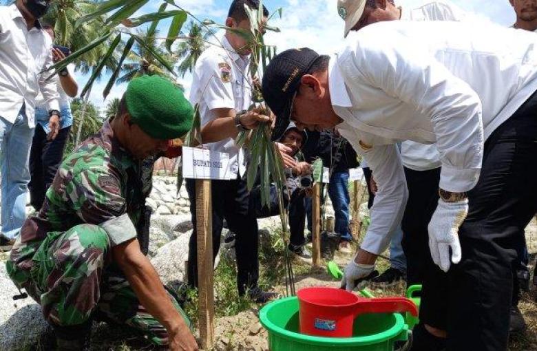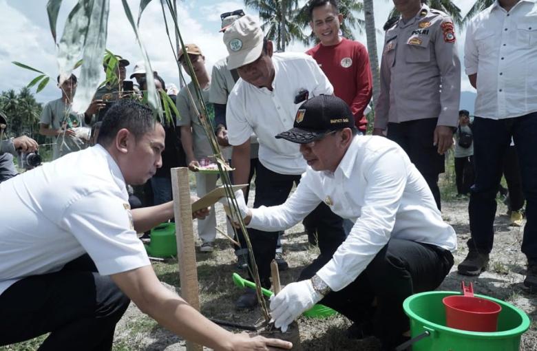 TRIBUNPALU.COM, SIGI - Pemerintah Kabupaten Sigi menanam bambu disepanjang Bantaran Sungai di Desa Poi Kecamatan Dolo Selatan Sigi...