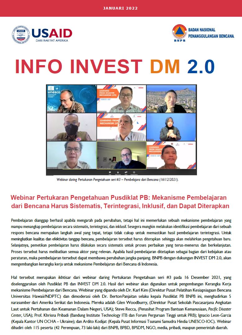 Adaptasi Perubahan Iklim dan Pengurangan Risiko Bencana Info INVEST DM - Januari 2022 Bahasa Bahasa Dokumen : Indonesia 5 April 2022 / Comments Dikirim oleh admin pada 5 April 2022 File Download (Right click - Save link as.. for direct download) Newsletter02_InfoINVESTDM2.0_Ind_FINAL for print.pdf (681.04 KB)