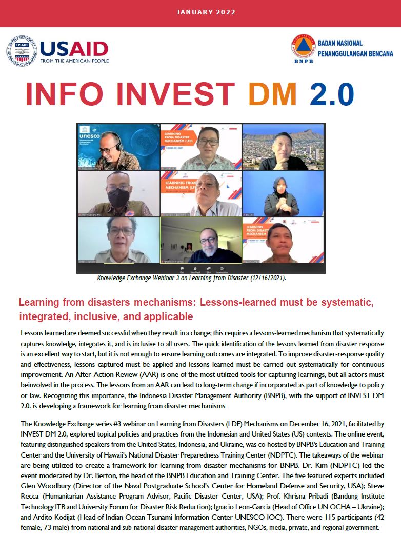 Adaptasi Perubahan Iklim dan Pengurangan Risiko Bencana Info INVEST DM - Januari 2022 English Bahasa Dokumen : Inggris 5 April 2022 / Comments Dikirim oleh admin pada 5 April 2022 File Download (Right click - Save link as.. for direct download) INFO INVEST DM_Newsletter02_ENG_AD_FINAL for print.pdf (649.85 KB)