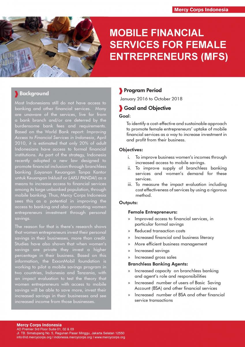 Meningkatkan Pemberdayaan Ekonomi MFS - One Pager Bahasa Dokumen : Inggris 18 December 2019 / Comments Dikirim oleh darisandi pada 18 December 2019 File Download (Right click - Save link as.. for direct download) One Pager MFS English.pdf (841.27 KB)