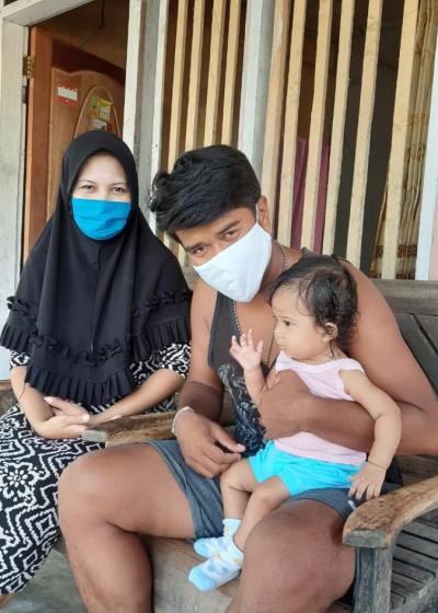 Ramdan (27) dan Darni (26) merupakan warga Dusun 2 Desa Walatana, Kecamatan Dolo Selatan. Keluarga ini merupakan salah satu penerima bantuan pencegahan COVID-19 dari Mercy Corps Indonesia. Saat menerima bantuan tersebut, Darni tengah hamil 9 bulan, dan selang beberapa hari kemudian, anaknya lahir di hari raya idul fitri dengan bobot 2.8 kg dan diberi nama Alifah Ramadani, dan saat ini berusia 6 bulan.